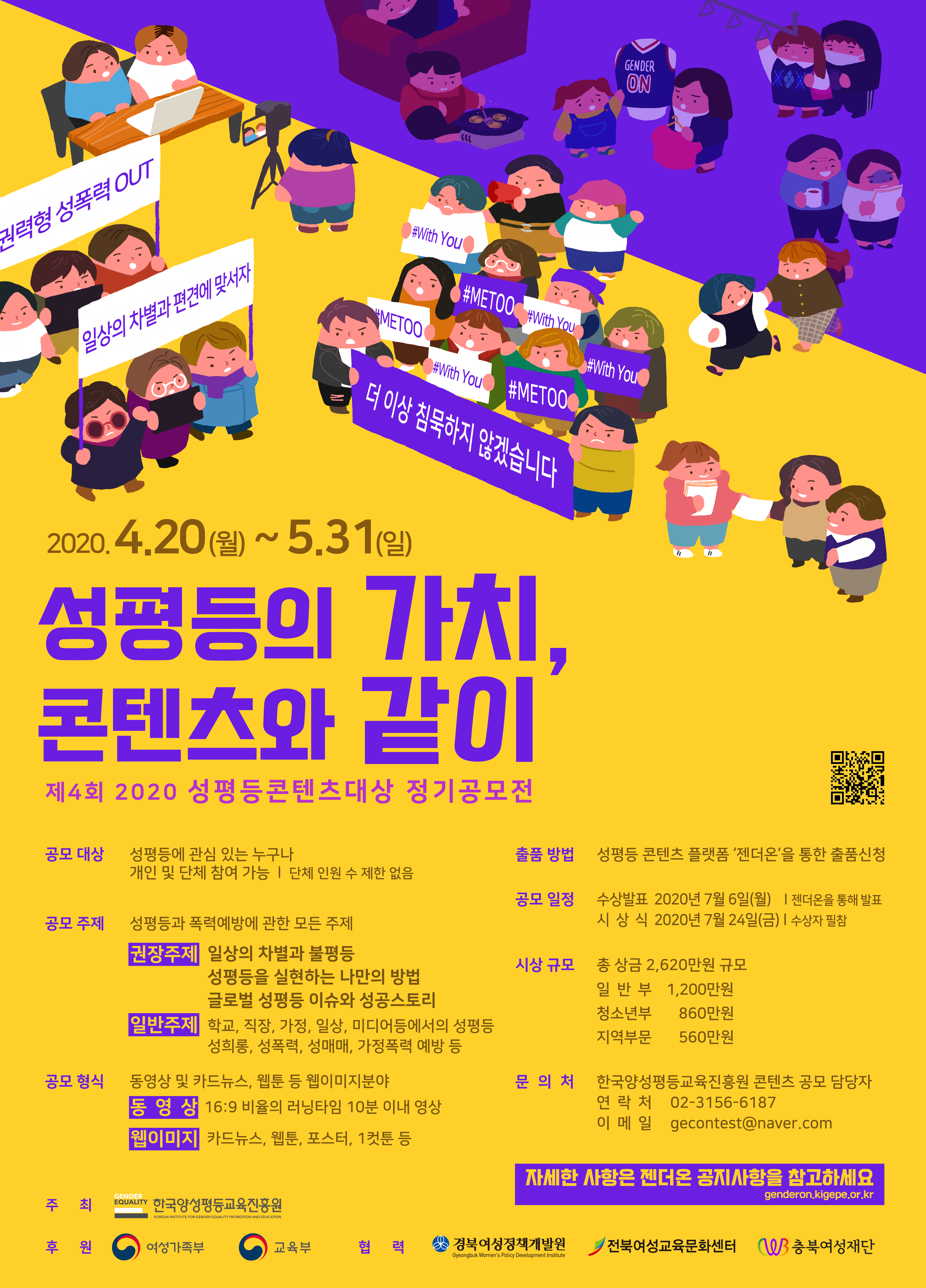 한국양성평등교육진흥원에서 제4회 2020 성평등콘텐츠대상 정기 공모전을 개최합니다!